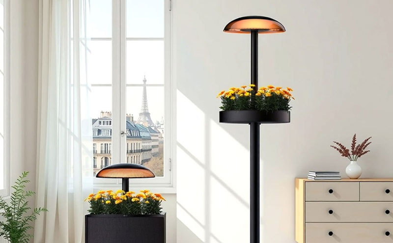 Лампа выполняет две функции — и комнату освещает, и садик выращивает. Инновационная фитосистема интегрирована в круглый абажур, регулируемые по высоте светодиоды имеют пять уровней освещенности, встроенный резервуар для воды емкостью около 6 литров обеспечивает автоматический полив растений.