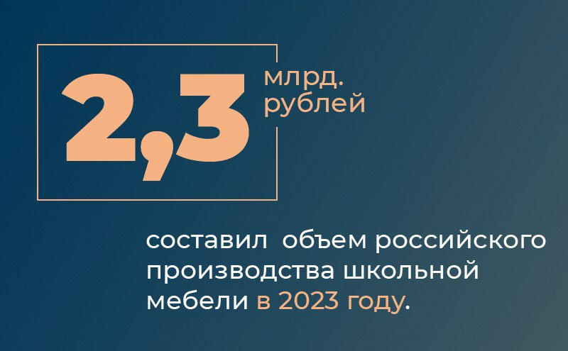 — В России,согласно расчетам аналитиков, объем производства школьной мебели в 2024 году составил чуть больше 2 млрд. рублей, еще $660,5 тыс оценивается доля импорта мебели для школ.